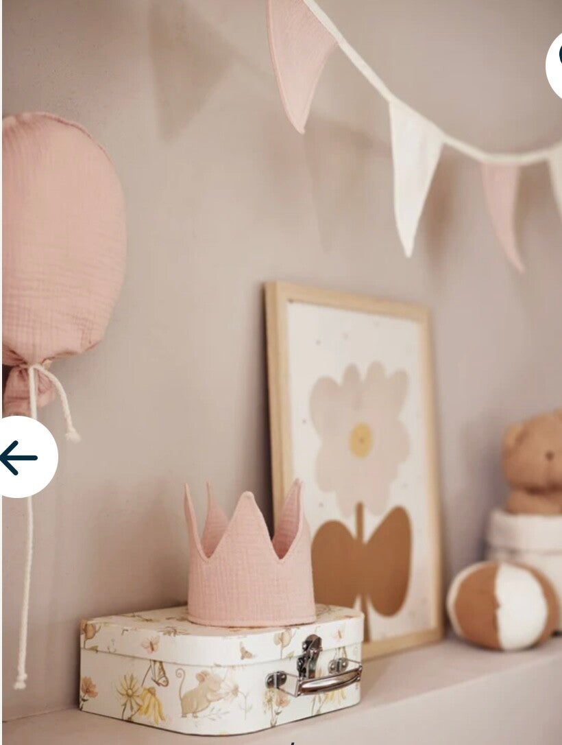 Maak van elke dag een feestje van met deze leuke stoffen vlaggenlijn! De vlaggetjes hebben de mooie neutrale kleuren Biscuit en Ivory. De vlaggetjes zijn herbruikbaar en gemaakt van 100% hydrofiel katoen. In totaal zitten er 6 vlaggetjes aan de lijn: 3 Wild Rose kleurige en 3 Ivory of verkrijgbaar in de combi jeans blue/Olive Green. Aan beide zijden vind je een touwtje van 20 cm om de vlaggenlijn mee op te hangen. Super leuk voor feestjes of voor op de babykamer! Maak het feestje compleet met de bijpassende verjaardagskroon en de stoffen ballon.