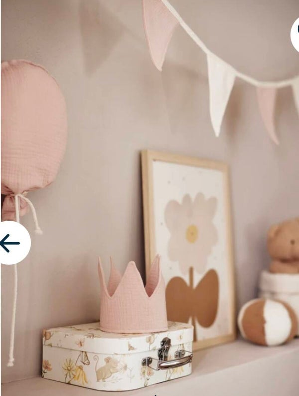 Deze stoffen ballon is een echte eye-catcher in de babykamer! De ballon bevat een lusje aan de achterkant zodat je deze ook op kan hangen. De ballon heeft een vulling welke uitneembaar is, zodat je hem kan wassen of laten borduren.Verkrijgbaar in jeans blue en Wild Rose.