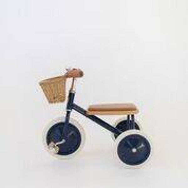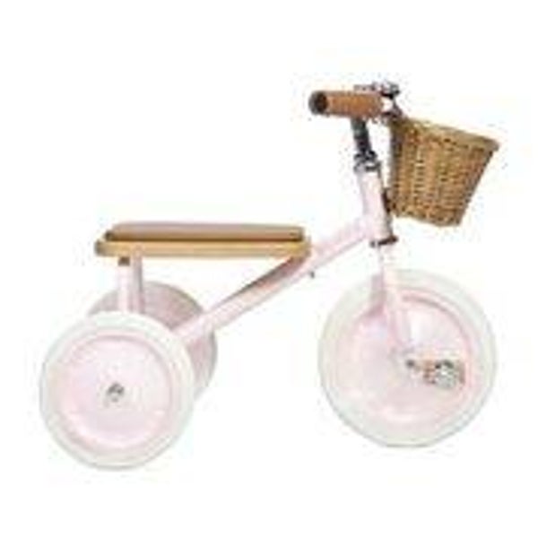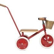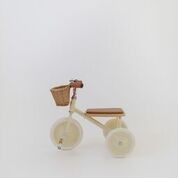 Trike Productdetails: · Gewicht: 5 kg · Leeftijd: 2-6 jaar · Frame: staal met gekleurde afwerking · Zitting: eikenhout met zachte vulling van vegan leer · Banden: rubber · Grips: veganistisch leer · Pedalen: eikenhout · Add-ons: rieten mand aan voorzijde, bel, afneembare duwstang · Verstelbare stuurhoogte: van 45-50,5 cm · Zithoogte: 30 cm