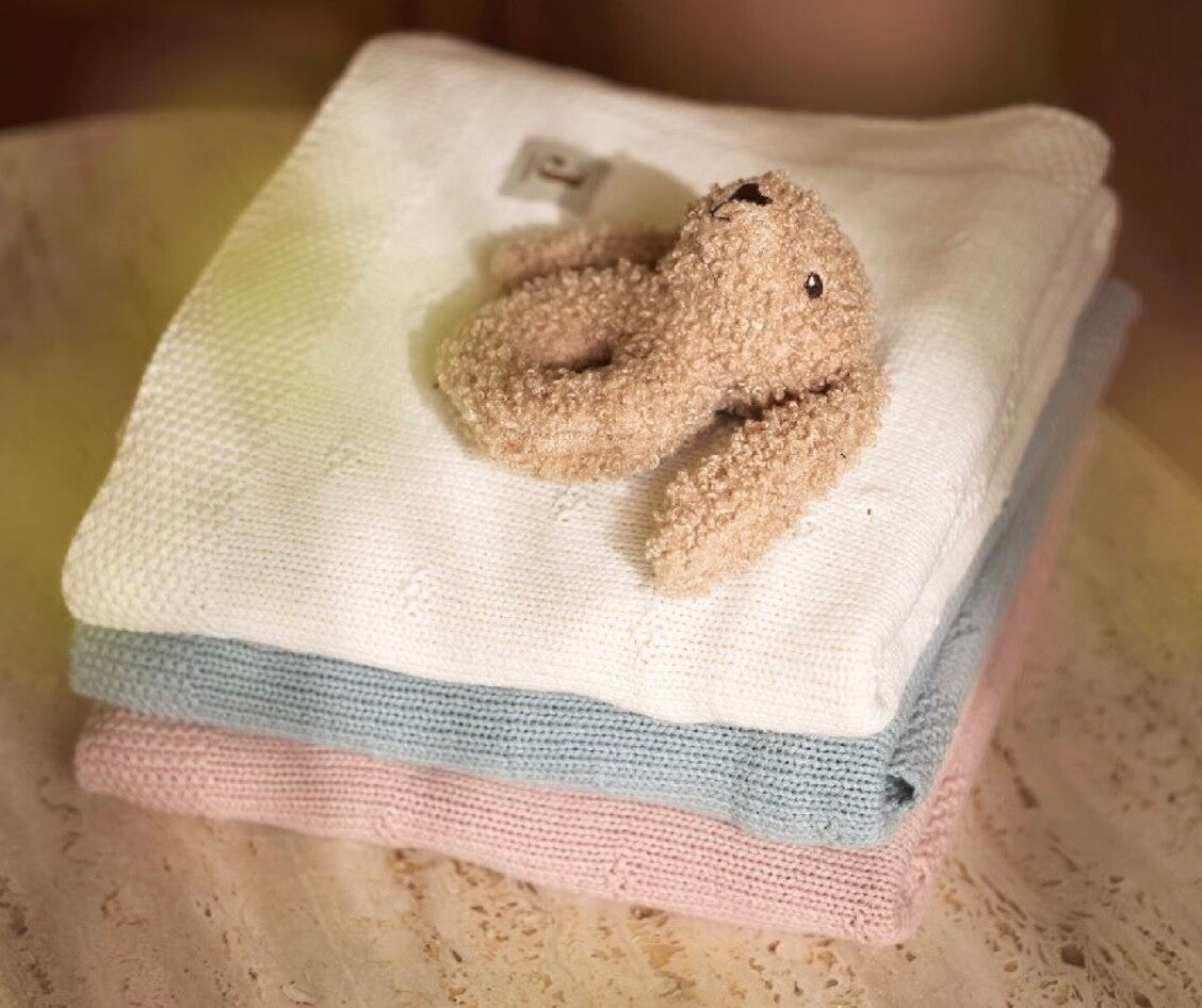 Met deze schattige konijnen rammelaar zal jouw kleintje zich uren vermaken. Dit heerlijk knuffelige item in zacht biscuitkleurig bouclé stofje heeft een lief geborduurd hartje als neusje. Deze rammelaar maakt een geluidje wanneer je hem schudt. Dit is toch het allerliefste konijntje?