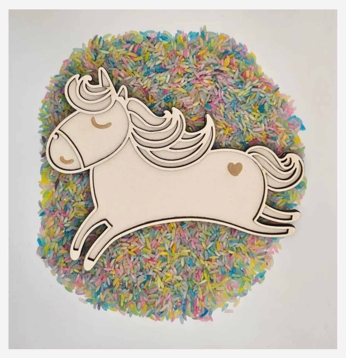 De houten vulvorm kan gevuld worden met speelrijst maar kan ook gebruikt worden als stempel in kinetisch zand.