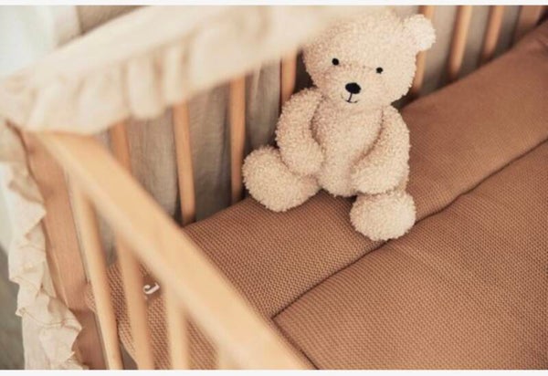 Deze lieve Teddy Beer van super aaibare Bouclé wordt de grote vriend van jouw mini. De knuffel is makkelijk vast te pakken door de armpjes of beentjes van de beer. Je kindje vindt ongetwijfeld troost bij deze knuffel en vertelt dit lieve Teddy Beertje alle kindergeheimpjes. De Teddy Bear zit dan ook stevig in de luisterhouding en valt niet om. Daardoor is het ook heel geschikt als mooie accessoire op de plank of commode in de babykamer. Deze lieve beer is verkrijgbaar in de kleuren Biscuit en Naturel