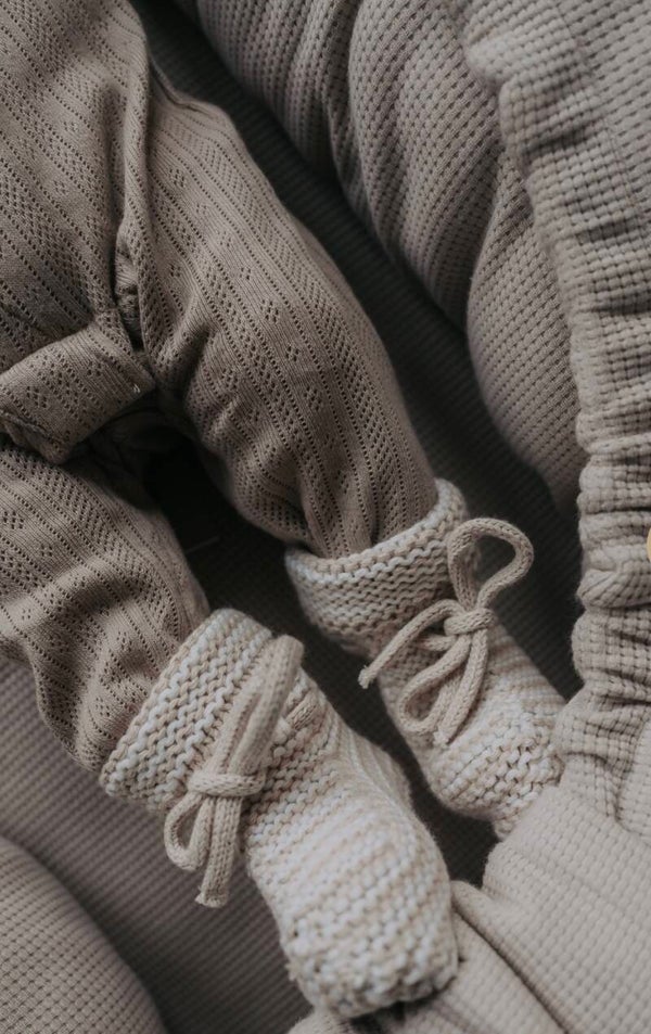 De slofjes zijn geschikt vanaf de geboorte tot een leeftijd van ongeveer drie maanden, afhankelijk van de grootte van de voetjes van de baby. Door de neutrale kleuren zijn ze erg makkelijk te combineren. Deze slofjes zijn unisex.