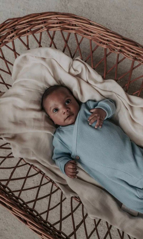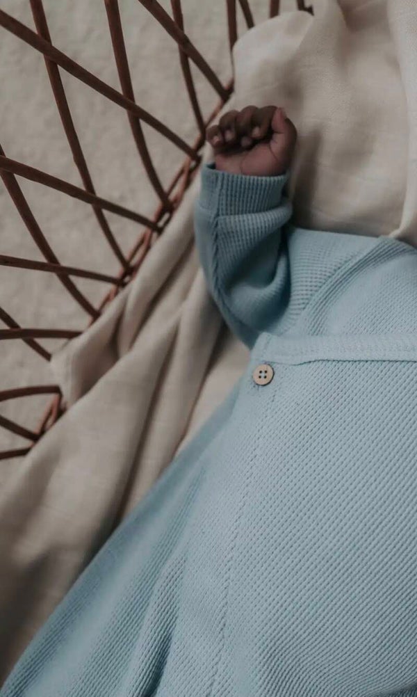 Dit lichtblauwe boxpakje is zeer geschikt voor Newborn. Stof rekt heel soepel mee en voelt zacht aan door zijn wafel structuur. Alle boxpakjes zijn voorzien van drukknoopjes in het kruis, zodat je het kleintje gemakkelijk kunt verschonen en niks over het hoofdje aan- en uit hoeft te trekken. Wil je graag een complete set aanbieden? Combineer het boxpakje dan met het bijpassende mutsje.