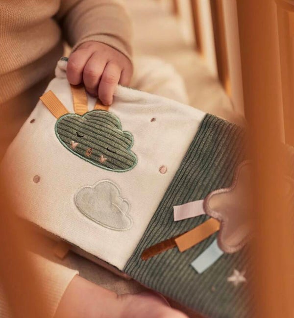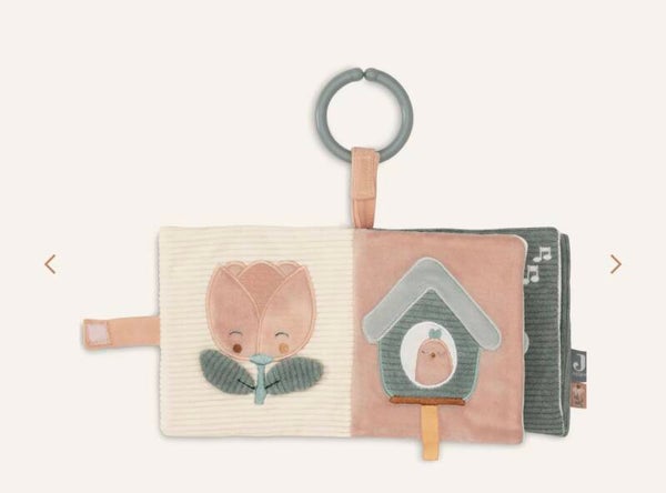 Ontdek de magie met dit betoverende activiteitenboekje in het Lovely Birds-thema! Dit kleurrijke boekje heeft vier zachte ribstof- en velourpagina’s vol schattige opdrukjes van fairy amy, een tulp, een vogelhuisje, vrolijke bloemen, een schattig vogeltje met vleugels en fluffy wolkjes. Elke pagina heeft knisperingen voor extra geluidseffecten en een sprankelend spiegeltje in de vorm van een ster dat je kleintje zal verrassen. Met de handige klittenbandsluiting en de Sea Green plastic ring is dit boekje perfect om mee te nemen!