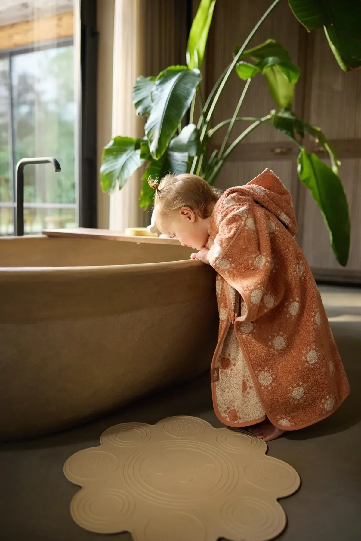 Deze badponcho is perfect na een bad of een dag vol waterpret! De poncho is gemaakt van zachte badstof, wat het vocht snel opneemt. Het schattige capuchonnetje houdt het hoofdje lekker warm en door de omgekeerde kleuren van binnen- en buitenkant krijgt de poncho een speels tintje. Het drukknoopje aan de zijkant zorgt dat hij goed blijft zitten, ook als je kindje rondloopt of speelt. Ideaal voor thuis, maar ook handig mee te nemen naar het strand of zwembad!